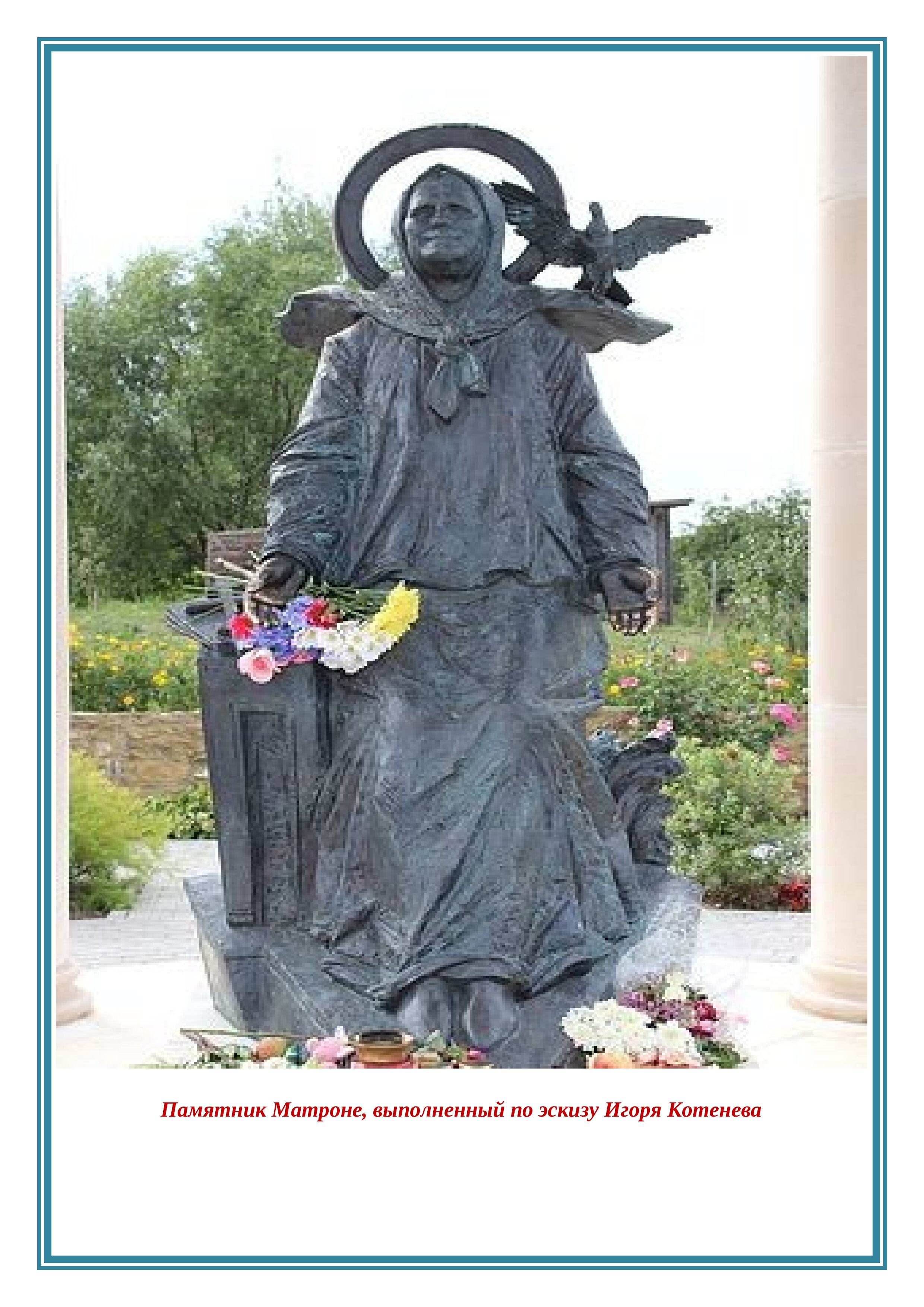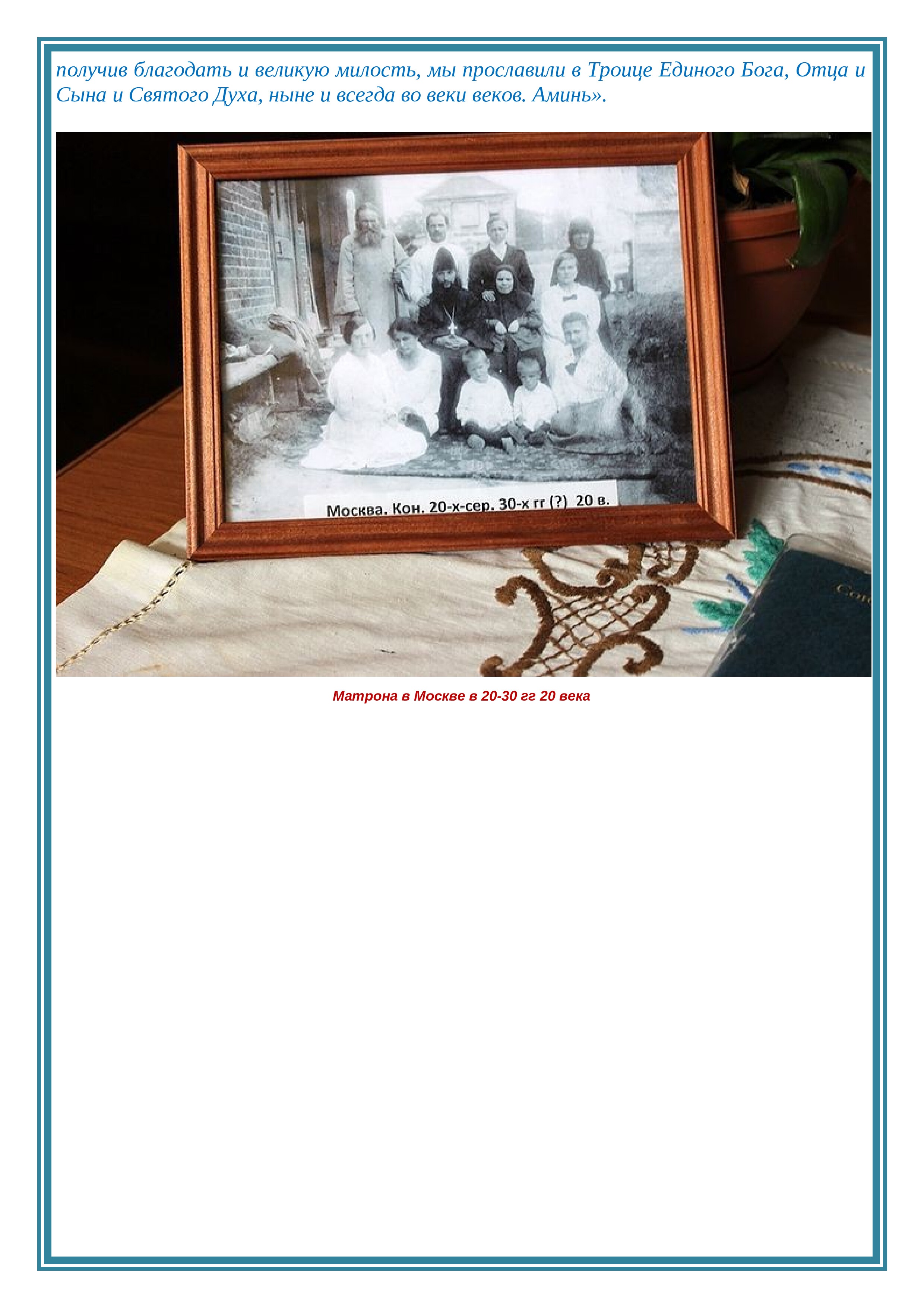 Значения этих слов матушка никому не объяснила, но ее близкие догадывались, что отец Иоанн провидел особое служение Матронушки России и русскому народу во времена гонений на Церковь.