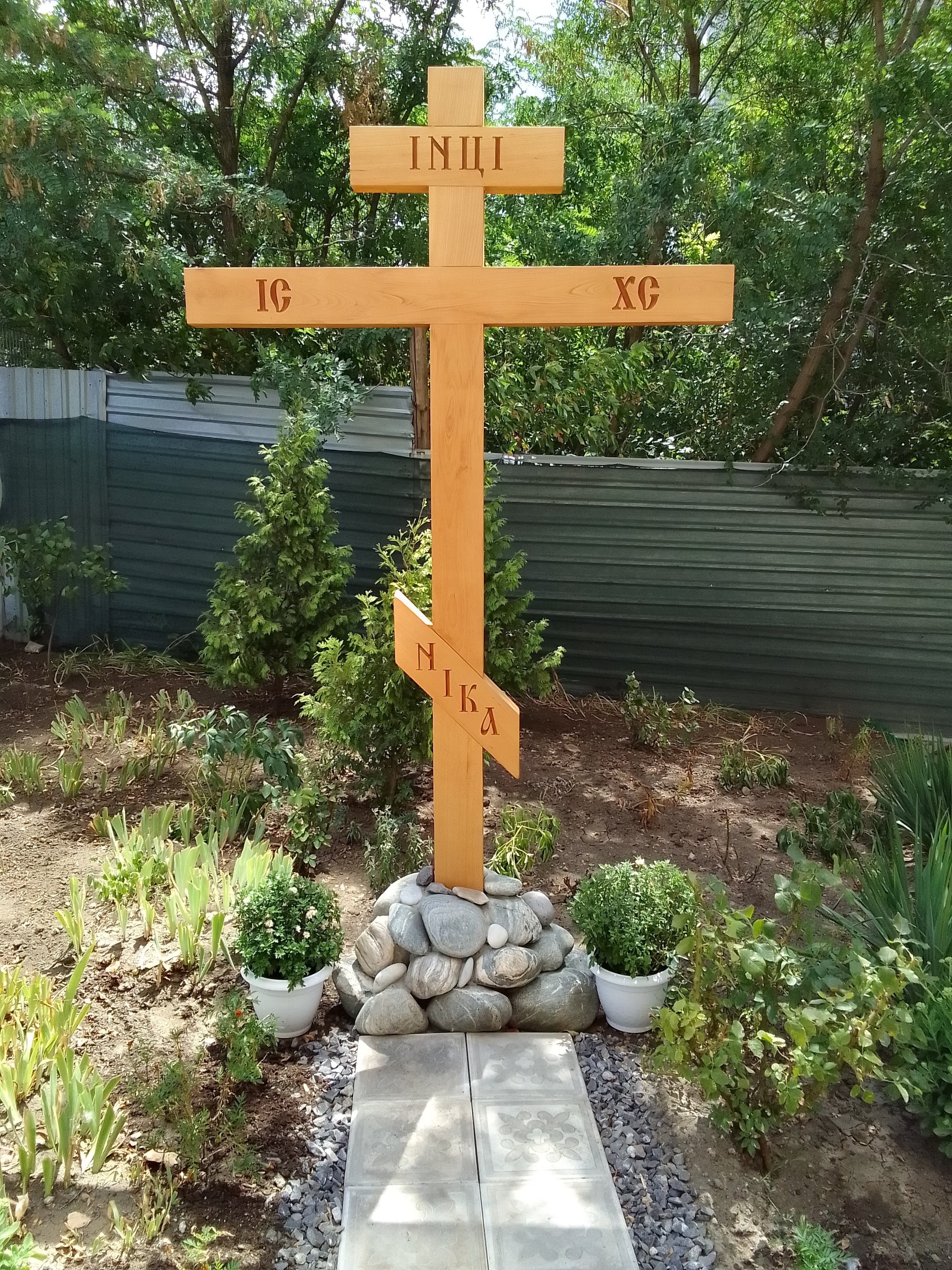 В церковном дворе установлен деревянный поклонный Крест с основанием из натурального камня. Теперь не только прихожане, но и каждый проходящий христианин может поклонится честному Кресту.